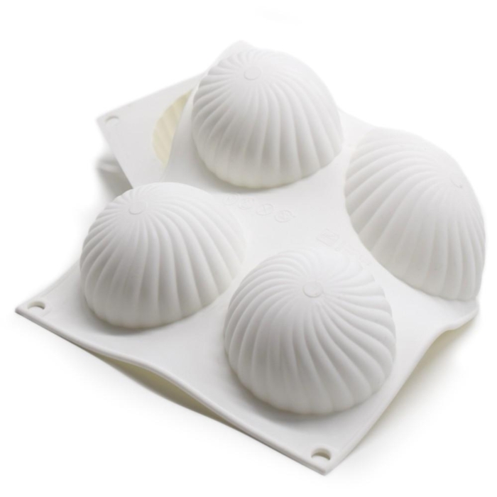 Med denna silikonform kan du göra 6st vackra spiralmönstrade halvklot. Gör moussen/smällt chokladen och fyll formen. Låt stelna och tryck sedan ut figurerna. Perfekt som bakform eller för att gjuta exempelvis mousser, pannacottor eller glasskupoler. Formen går att använda både i ugn (max 230 °C) och mikrovågsugn, tål att frysas (lägst -30 °C) och maskindiskas. Den går att använda till t.ex. choklad, mousse, kaksmet, jello, sockerpasta och marsipan.