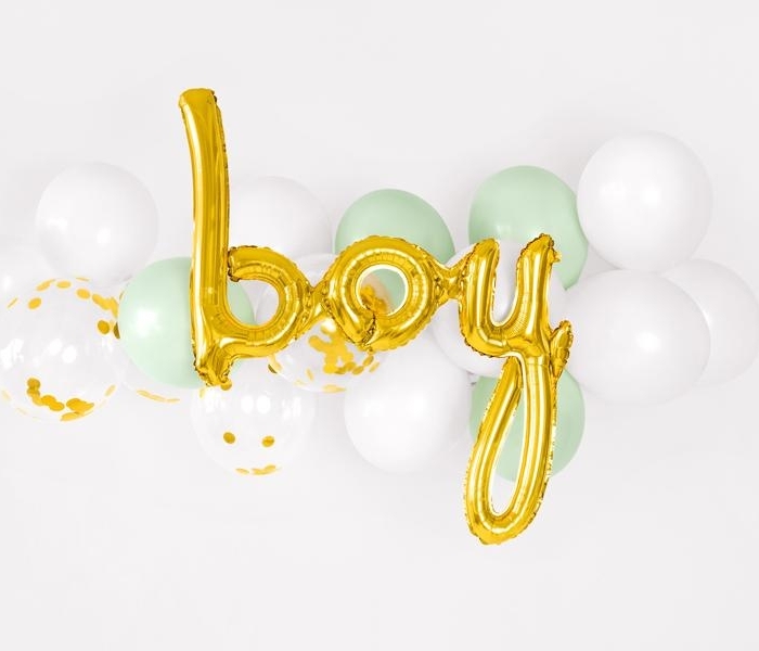 Fin guldfärgad folieballong med texten Boy från PartyDeco.