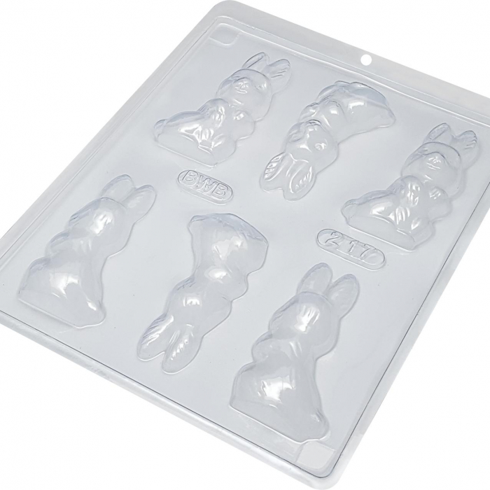 Med denna BWB Simple Mold kan du skapa professionella praliner i form av fina kaniner. Fyll bara på botten av PET-formen med choklad upp till kanten. Låt stelna och tryck sedan ut chokladen.