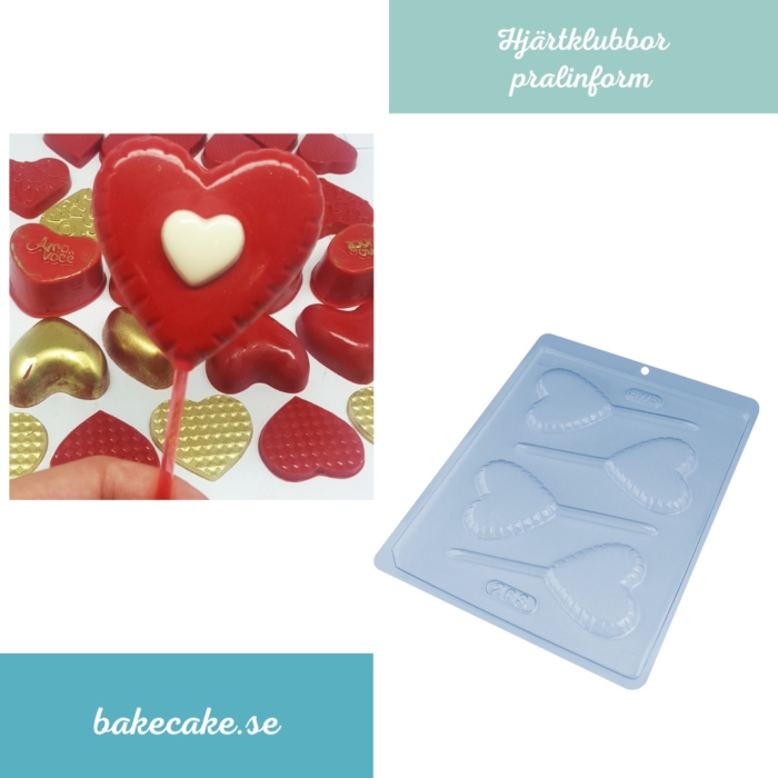 Med denna BWB Simple Mold kan du skapa professionella praliner i form av hjärt klubbor. Fyll bara på botten av PET-formen med choklad upp till kanten. Låt stelna och tryck sedan ut chokladen.