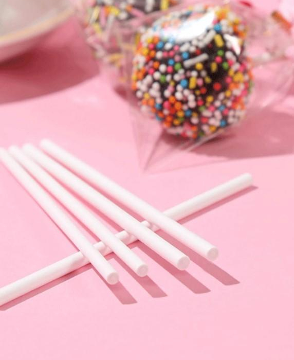 Proffsiga vita pinnar som kan användas till t.ex. klubbor eller cake pops.
