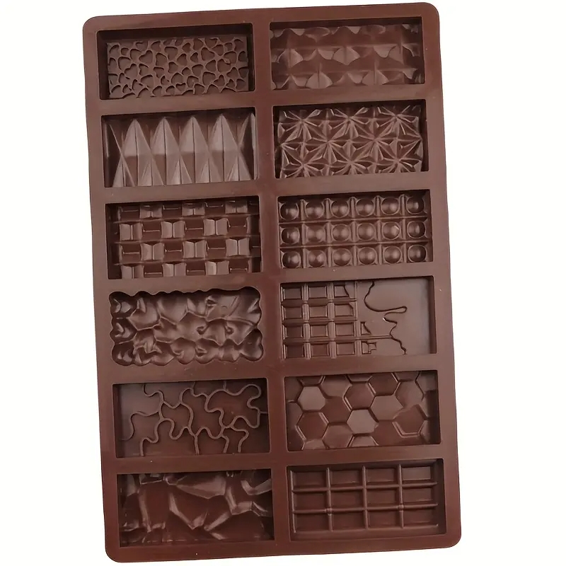Skapa vackra och unika chokladkakor med denna mångsidiga silikonform med 12 olika mönster.