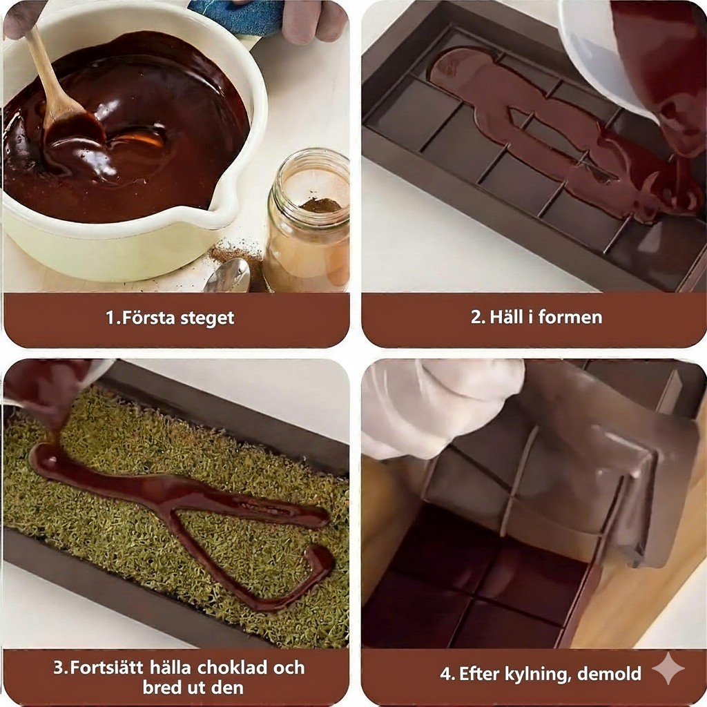 Denna hållbara och återanvändbara form är perfekt för choklad, karameller, gelé, isbitar, tvål eller resinprojekt – enkel att lossa, enkel att rengöra och redo att användas om och om igen.