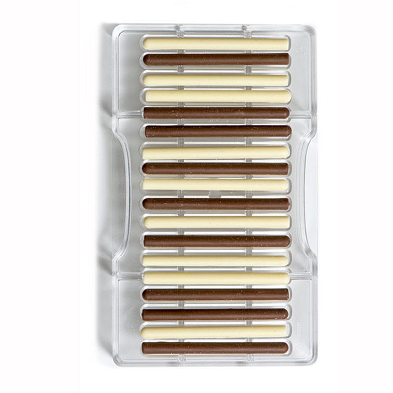 Professionella polykarbonatformar, ett material som gör att du kan få glänsande och perfekta chokladpraliner. Det är viktigt att temperera chokladen väl innan du häller den i formen.