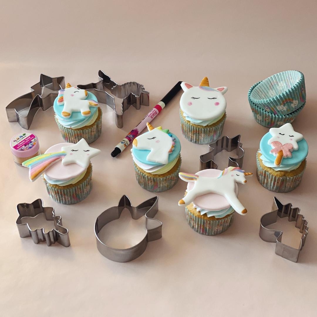 9-Pack utstickare i rostfritt stål från BakeCake för att göra enhörningar, enhörningsshuvud, stjärnor, moln och regnbåge. Nu är det lätt göra fantastiska sockerdekorationer, även för nybörjaren. Dekorera tårtan, cupcakes eller andra bakverk med detta fina mönster. Används med t.ex. sockerpasta, marsipan, kakdeg eller gumpaste. Perfekt för en enhörningstema, man kan även göra en häst om man tar bort hornet.