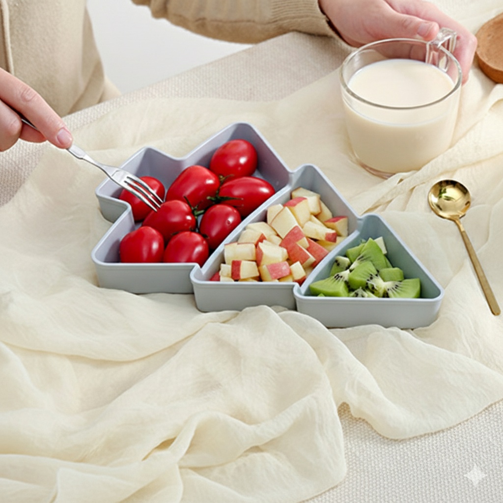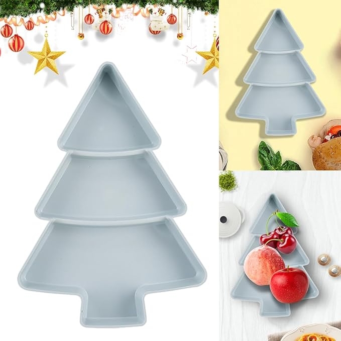 Skapa en festlig och inbjudande servering med detta stilrena julgransformade fruktfat med tre sektioner.