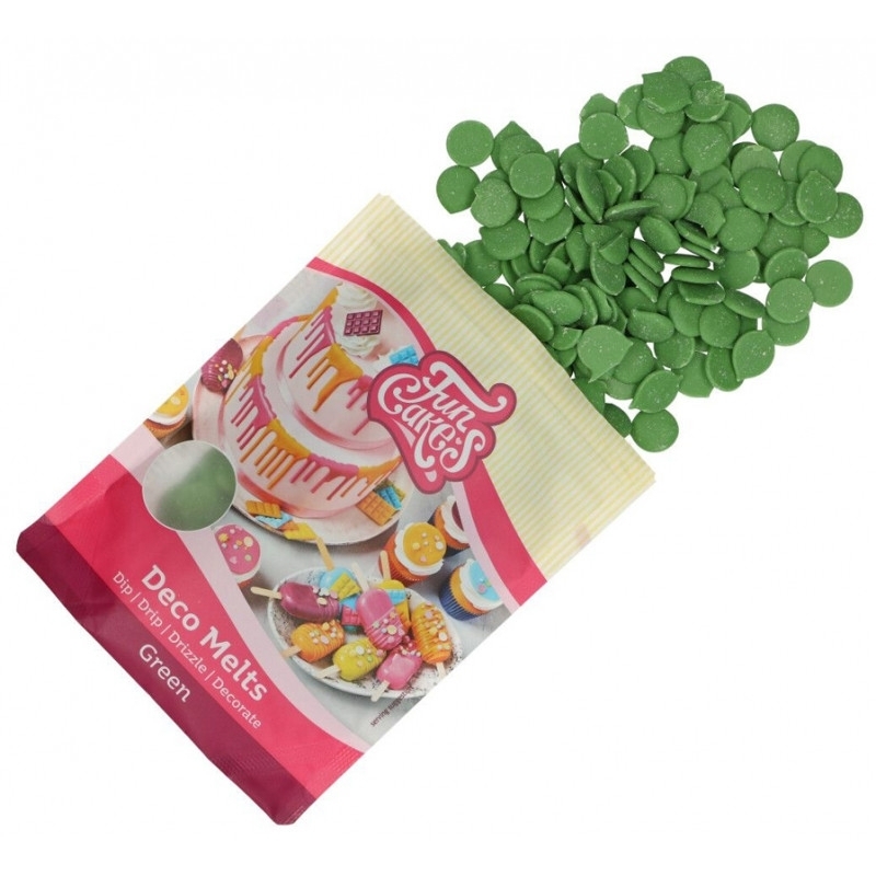 Deco Melts från FunCakes erbjuder dig massor av dekorationsmöjligheter! Du kan använda dem för att göra en droppande kant på en tårta eller ett regn över klubbor och choklad, men de är också perfekta för att doppa kakor, frukt, pops och mycket mer i. Det går även alldeles utmärkt att bara ha dessa söta chokladknappar som dekoration på dina bakelser.