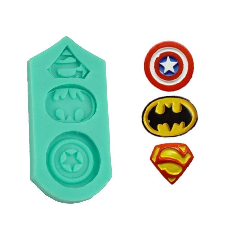 Rolig silikonform för att tillverka tre stycken välkända superhjälte-symboler. Perfekt för ett Batman, Stålmannen eller Captain America kalas!