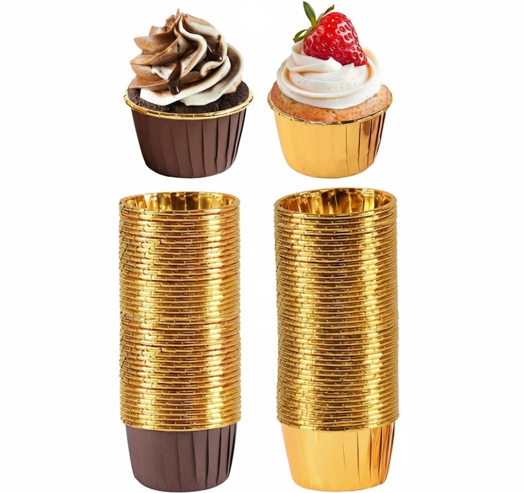 Formarna finns i två färger – kaffebrun med guld samt helt i guld – och är tillverkade av värmetålig aluminiumfolie som leder värme jämnt för ett perfekt gräddat resultat varje gång.