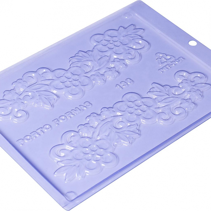Med denna Porto Formas Simple Mold kan du skapa professionella praliner i form av tårtdekorationer. Fyll bara på botten av PET-formen med choklad upp till kanten. Låt stelna och tryck sedan ut chokladen.
