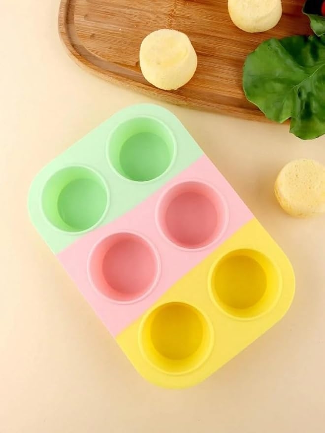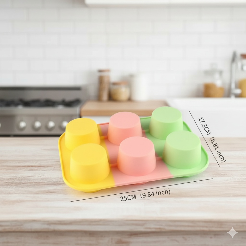 Baka perfekta muffins och cupcakes med denna flerfärgade silikonform med 6 jämnt fördelade hål.