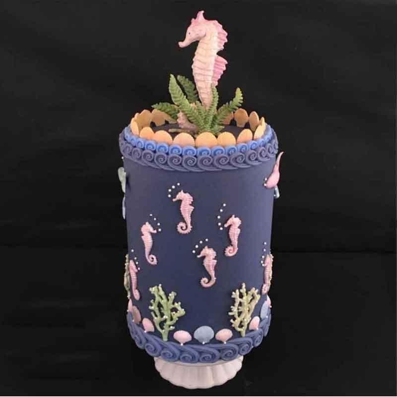 Gör så här: pudra formen lätt med florsocker eller majsstärkelse och knåda marsipanen/sockerpastan/kakdegen smidig. Tryck in massan i formen med fingrarna eller med hjälp av modelleringsverktyg. Tryck ut den färdiga sjöhästen och börja dekorera tårtan eller bakverken. Denna form kan även användas tillsammans med smält choklad eller Candy Melts. Då behöver dessa först smältas i mikrovågsugn eller vattenbad, sedan fyll formen och låt stelna. Vänd formen upp och ned och ta försiktigt ut den färdiga chokladbiten.