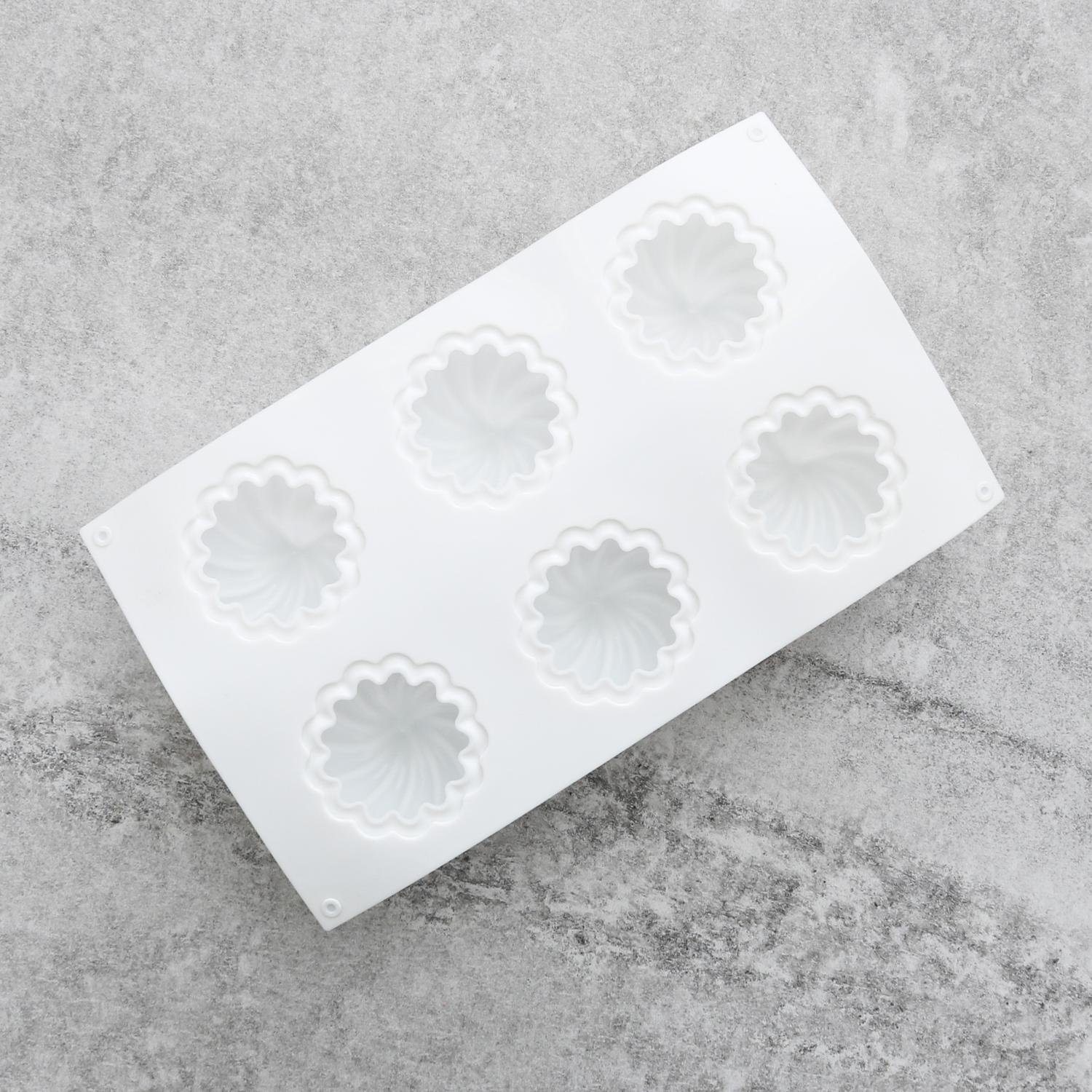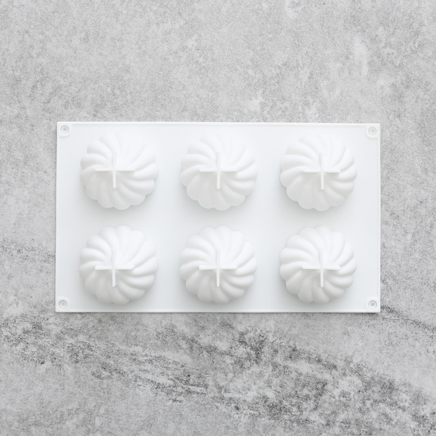 Med denna silikonform kan du göra 6st vackra spiralmönstrade halvklot. Gör moussen/smällt chokladen och fyll formen. Låt stelna och tryck sedan ut figurerna. Perfekt som bakform eller för att gjuta exempelvis mousser, pannacottor eller glasskupoler. Formen går att använda både i ugn (max 230 °C) och mikrovågsugn, tål att frysas (lägst -30 °C) och maskindiskas. Den går att använda till t.ex. choklad, mousse, kaksmet, jello, sockerpasta och marsipan.