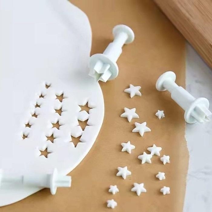 Ett set med 3 stycken stjärnor i olika storlekar från BakeCake. Med dem kan du göra vackra dekorationer i tex. sugarpaste och flower paste. Utstickarna har ejektorfunktion. Perfekt för att göra detaljer till din tårta eller cupcakes eller formströssel tex.