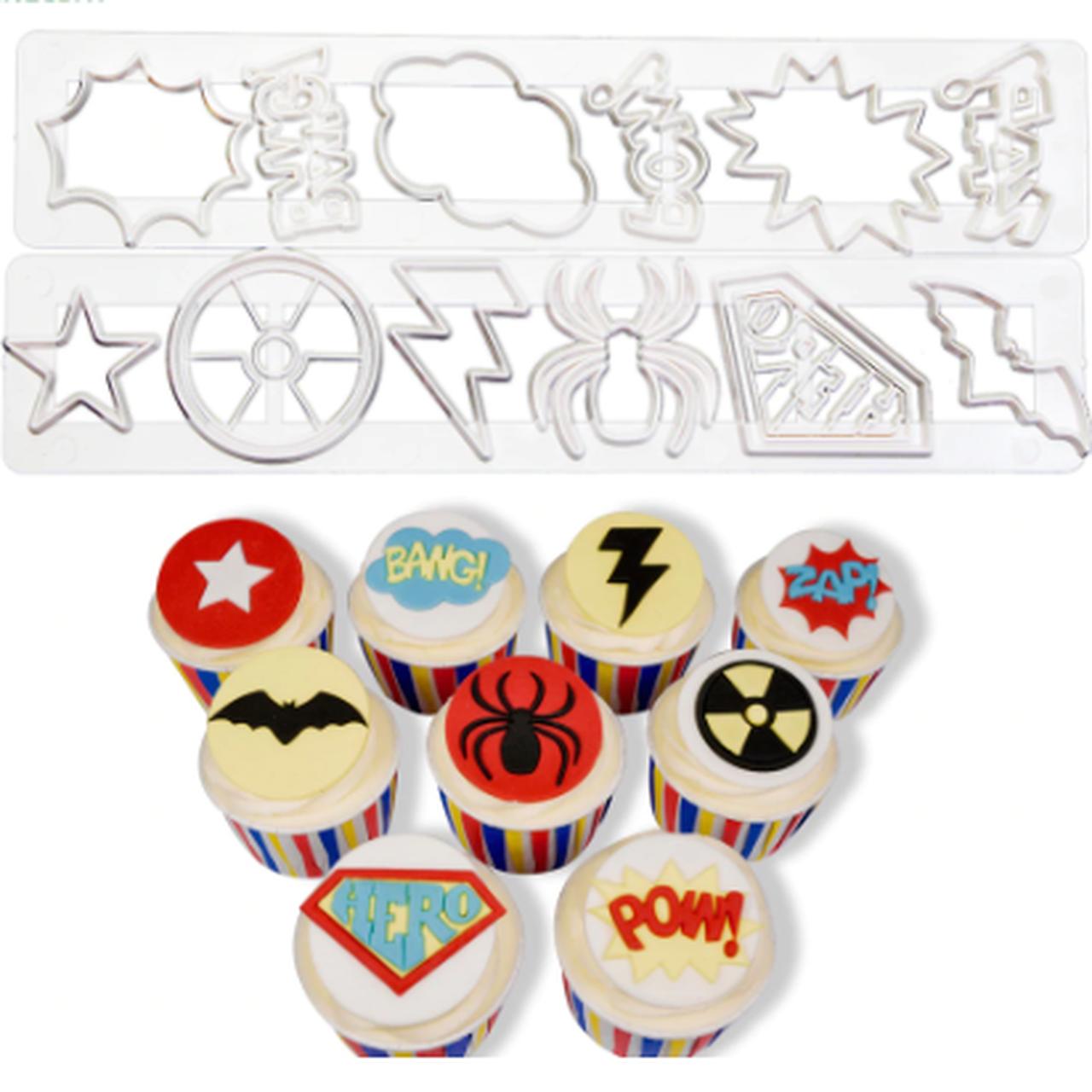 Vem vill inte vara en superhjälte för en dag? Med dessa tappits utstickare kan du enkelt göra superhjältedekorationer till tårtor, muffins och andra desserter. I förpackningen kommer två stycken stavar med olika superhjälteinspirerade tryck.