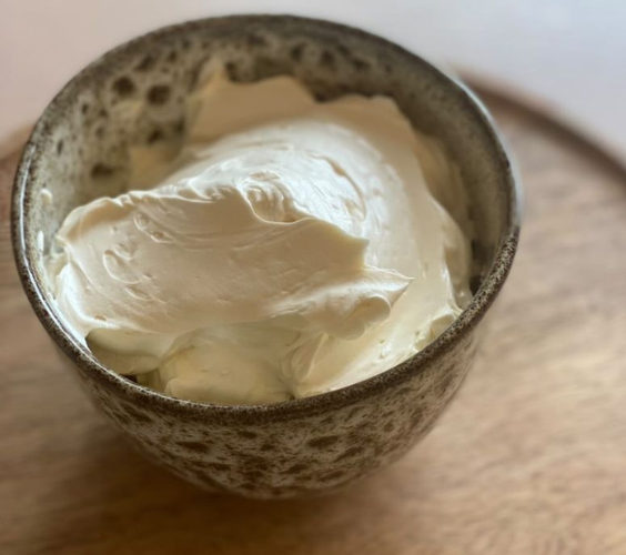2. Ställ åt sidan och vispa med en elvisp eller köksassistent tills den är vit och fluffig. Med köksassistent tar det cirka 10 minuter. Med elvisp får du räkna med den dubbla tiden.
